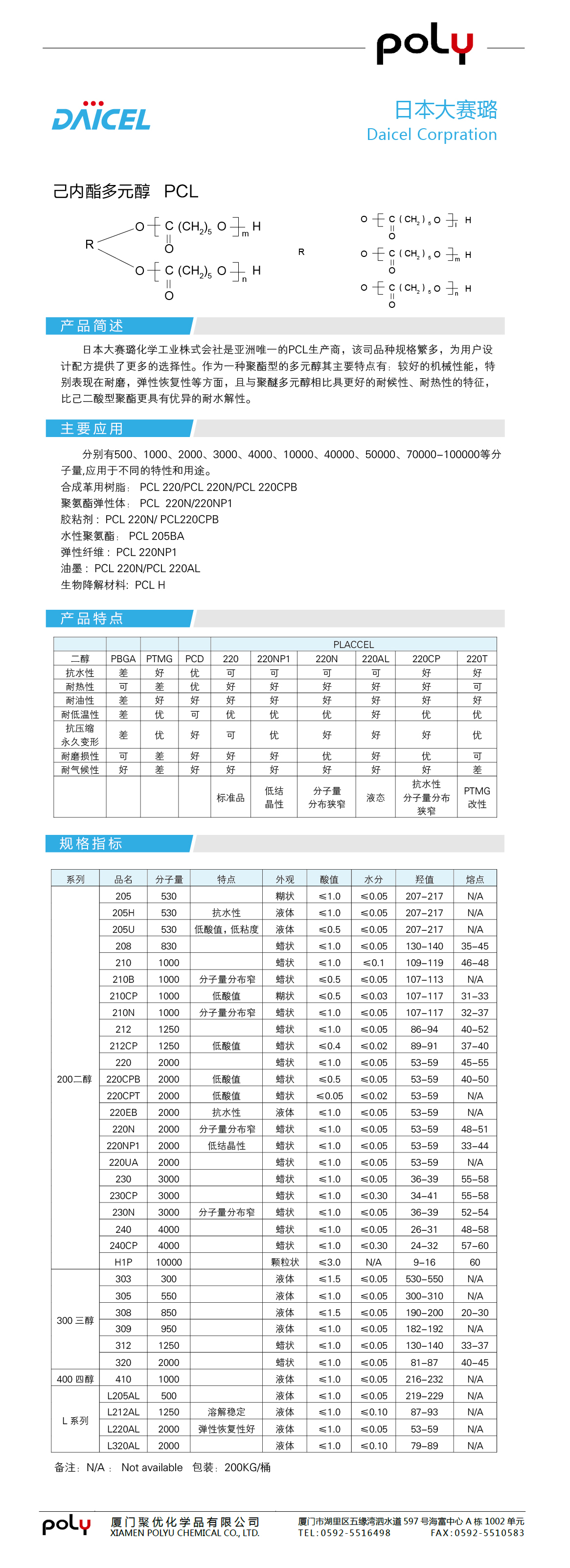 | 己内酯系列 | PCL | PCL | 【日本大赛璐】 | |||