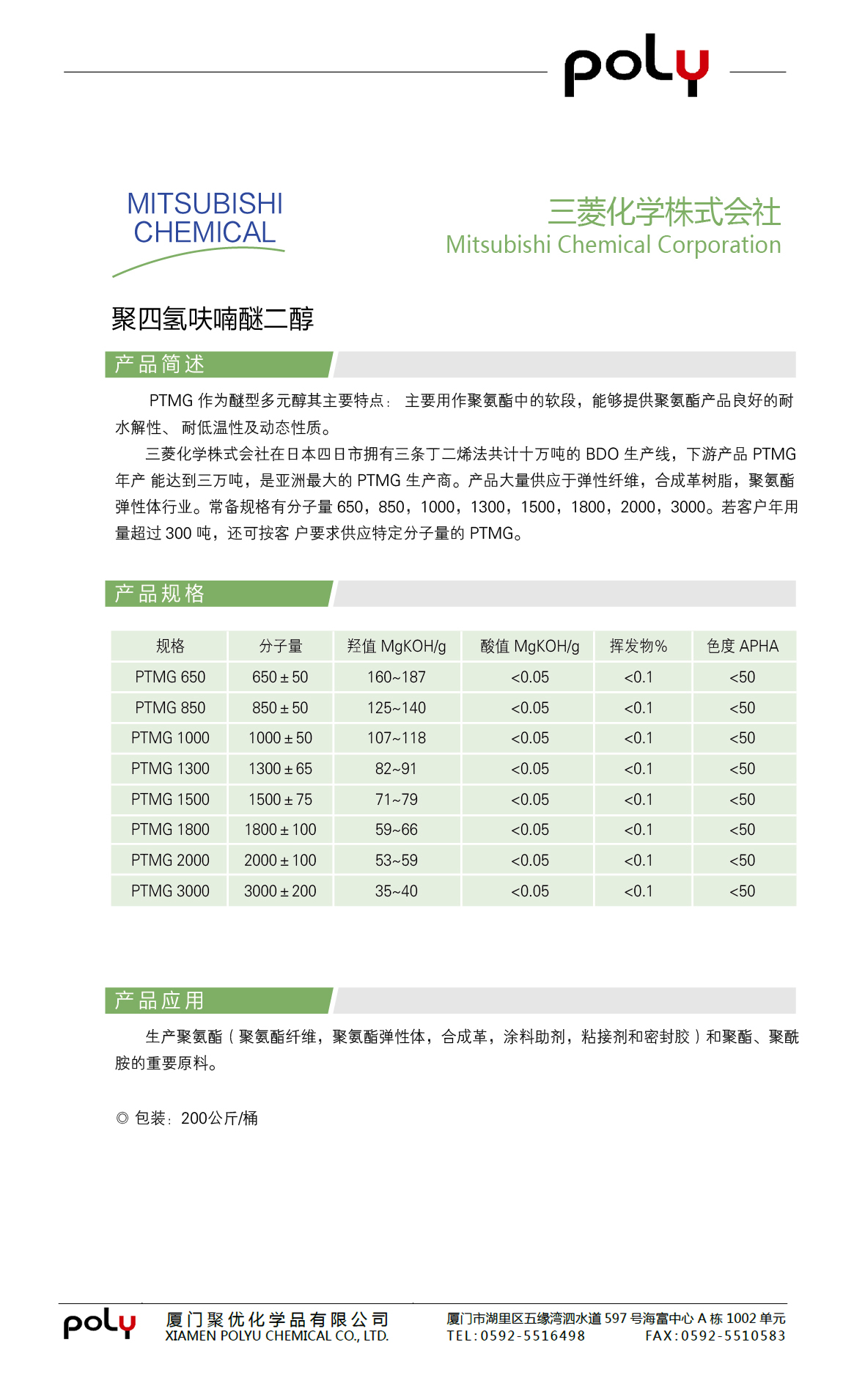聚四氢呋喃醚二醇 PTMG