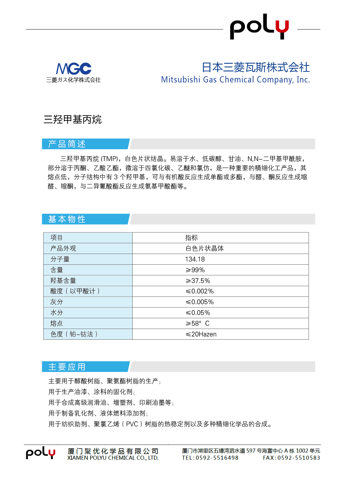 > > 三羟甲基丙烷