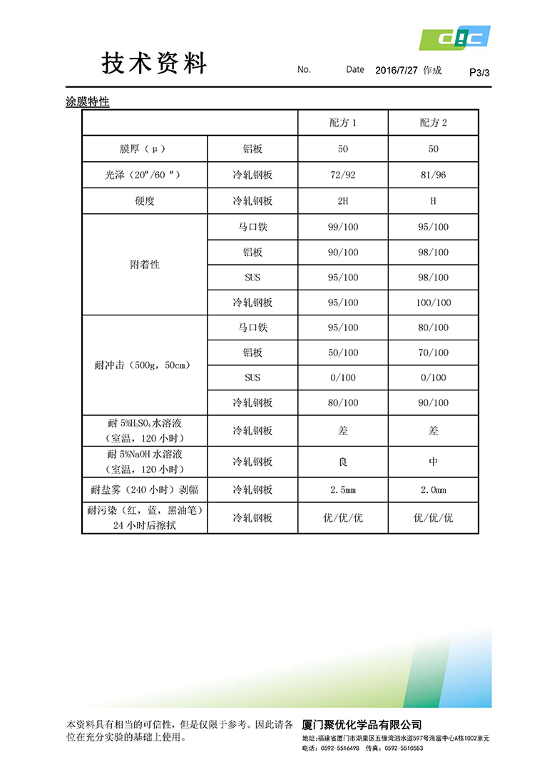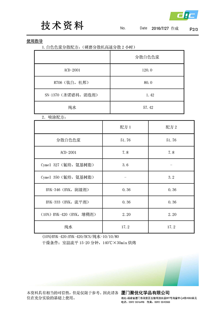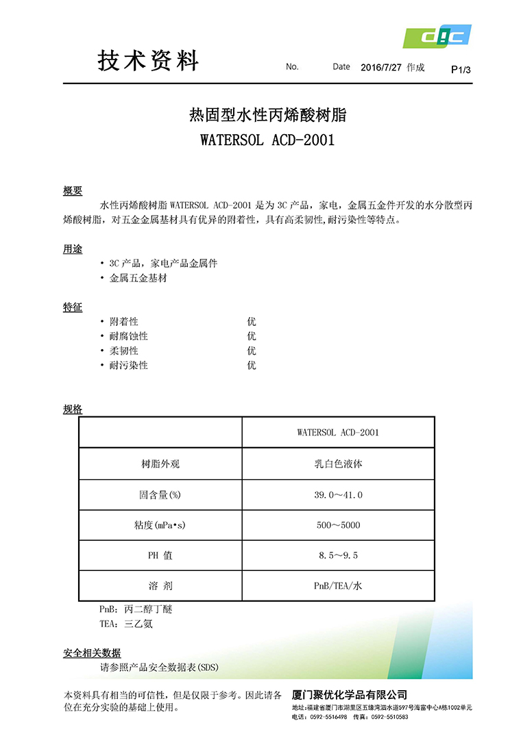 > > 热固型水性丙烯酸树脂