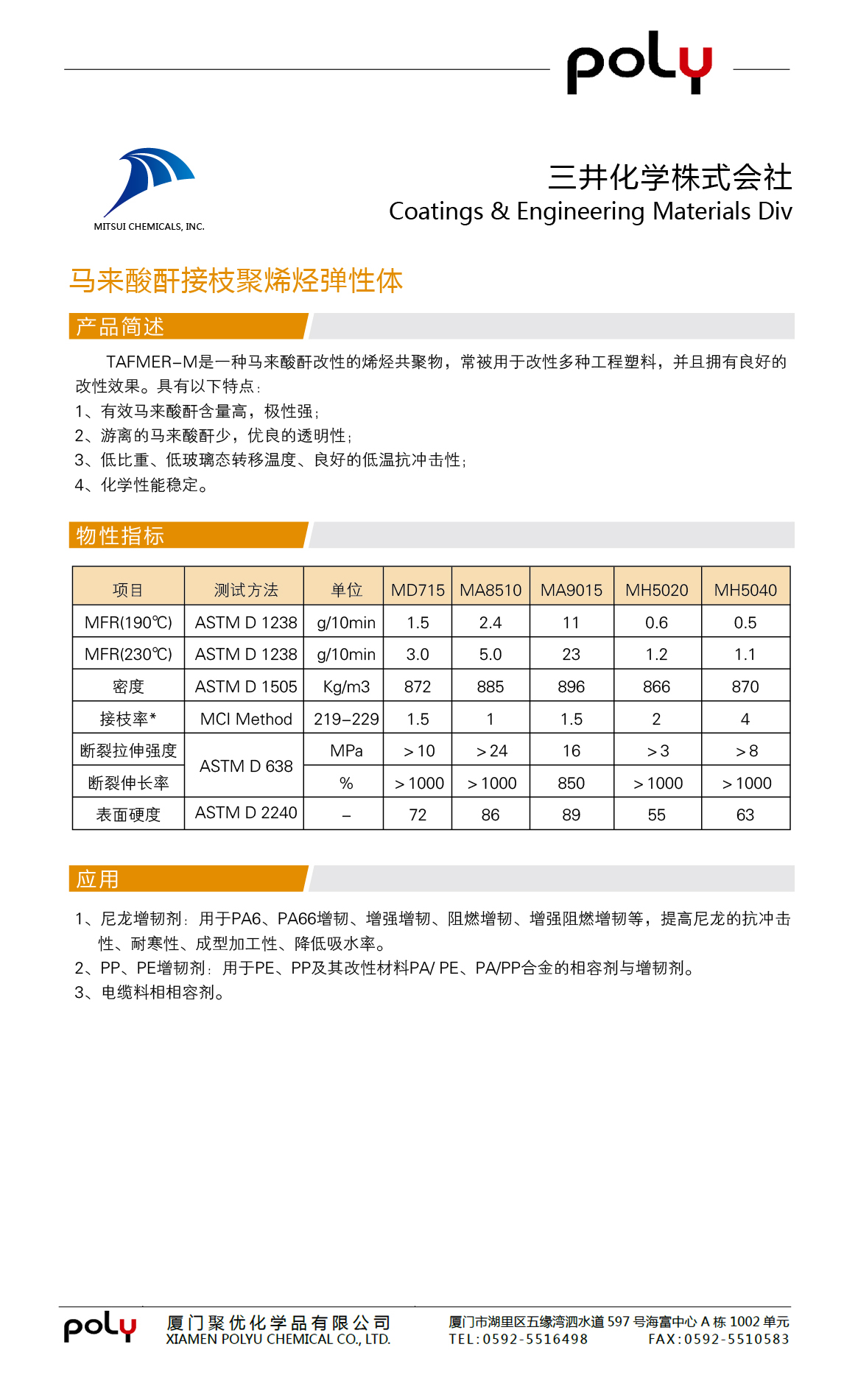 > > 马来酸酐接枝聚烯烃弹性体